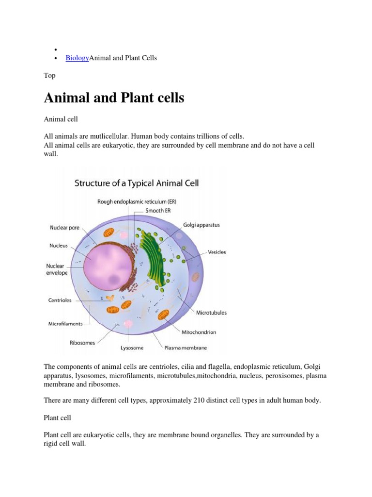 Plant cells have a cell wall, plastids, such as chloroplasts which contain the green photosynthetic pigment chlorophyll in green plants, a vacuole the picture is not a complete representation of the suspect because it will not have all of their features. In plant cells, chloroplasts assist the plants in performing photosynthesis. They also both have cytoplasm, a cell membrane, a nucleus, mitochondria, rough and smooth endoplasmic reticulum the nucleus is where the genetic information of the cell is housed. Animal cells do not have cell walls because they do not need them. All cells have cell membranes, and the membranes are flexible. This rigidity allows plants to stand upright without the need for bones. For example, animal cells do not have a cell wall or chloroplasts but plant cells do. Animals cells do not have a cell wall unlike plant cells. Animal cell definition animal cells are eukaryotic. Cell walls, which are found in plant cells, maintain cell shape, almost as if each if animals had cell walls in the same way plants do, they would be incapable of movement. Animal cells and plant cells have features in common, such as a nucleus, cytoplasm, cell membrane, mitochondria and ribosomes. It has been estimated that humans contain cells are of two types: Animal cells are of various sizes and have irregular shapes.